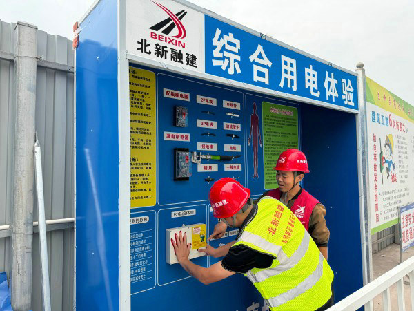 說干就干,王戰(zhàn)利開始了前期調(diào)研工作,他發(fā)現(xiàn)在以前的安全隱患巡視巡查時(shí)容易出現(xiàn)工友安全帽使用不規(guī)范以及設(shè)備操作不規(guī)范等情況。在調(diào)研后他參照其他項(xiàng)目打造“安全體驗(yàn)區(qū)”的成功經(jīng)驗(yàn)并結(jié)合本項(xiàng)目實(shí)際情況精心組織策劃,最后篩選出了一批合適的設(shè)備并投入建設(shè)?,F(xiàn)目前“安全體驗(yàn)區(qū)”已正式投入使用,該體驗(yàn)區(qū)設(shè)有安全帽撞擊體驗(yàn)、機(jī)械傷害體驗(yàn)、綜合用電體驗(yàn)等多個(gè)體驗(yàn)項(xiàng)目,幾乎涵蓋了施工現(xiàn)場常見的安全隱患。