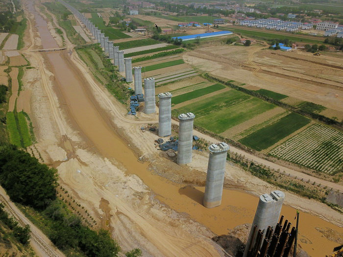 銀西鐵路5標(biāo)一工區(qū)位于甘肅慶城,管段全長(zhǎng)19.97公里,線路穿越三個(gè)鄉(xiāng)鎮(zhèn),路基和車站土方挖填方達(dá)271.25萬方;橋梁全長(zhǎng)10.1公里,其中特大橋6座、大橋4座、中橋4座。