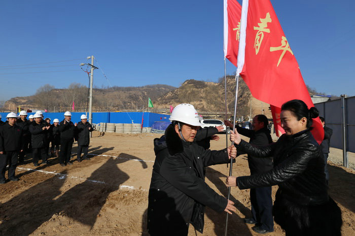 圖為集團公司工會領導向許寶勇青年突擊隊授旗