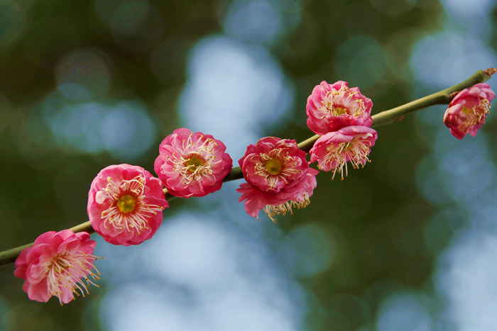 早春二月,北方有時(shí)天上還飄著雪花,甚至是鵝毛大雪,冬天下的雪還沒消融,地凍三尺,不管走到哪里,環(huán)顧四周,光禿禿一片荒涼,即使種植小麥的田野里,一兩寸高的小麥苗在寒風(fēng)中被凍的瑟瑟發(fā)抖,趴在地上不敢動(dòng)彈。西北風(fēng)卷著枯枝敗葉漫天飛舞,所到之處塵煙彌漫,不可一世,人們叫苦不迭。而地處南方的海濱城市寧波便不一樣了,年前還冷得縮手縮腳,羽絨服加身還感覺不暖和,年后天氣突然轉(zhuǎn)暖,鮮艷欲滴的白色、粉色、紅色的梅花一夜之間開遍城市大街小巷、公園、生態(tài)園,開遍農(nóng)村的庭院、田間地頭,十分耀眼。春節(jié)期間,人們穿著時(shí)尚的衣服,三三兩兩、一群一伙地出現(xiàn)在公園、植物園、生態(tài)園踏春,賞花,盡情地享受春天的美麗,躺在墨綠色的草坪上,天馬行空地暢想未來,背誦幾首與春天有關(guān)的唐詩、宋詞,將詩詞與美麗的大自然融為一體。仰望藍(lán)天白云,吮吸著花草撲鼻的清香,渾身感覺十分愜意。身穿漂亮衣服的少男少女,走進(jìn)花叢擺出各種姿勢,攝影師不停按動(dòng)相機(jī)快門,在機(jī)械的咔嚓咔嚓聲中,將一個(gè)個(gè)亮麗的瞬間定格于此,將一張張靚照分享給親愛的家人和朋友,將人生演繹的精彩紛呈。