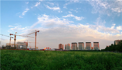 綠色環(huán)保工地在夕陽下的繁忙