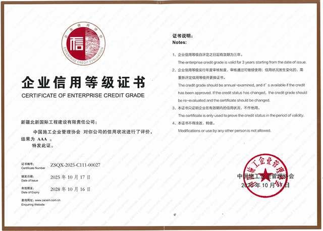 最高信用等級認(rèn)證!新疆兵團(tuán)建工北新國際首獲國家級AAA信用評級