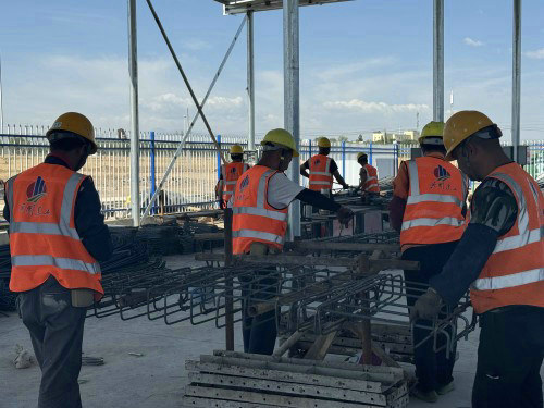 圖為兵團(tuán)建工水電集團(tuán)市政路橋公司第二筑路項(xiàng)目部預(yù)制蓋板鋼筋加工現(xiàn)場。工人們在酷暑的熱浪下如火如荼的加工鋼筋,為蓋板涵的施工提高施工效率、減少施工過程中的誤差,截至目前儲備鋼筋約80余噸、預(yù)制蓋板約百余塊。(汪文娟攝)