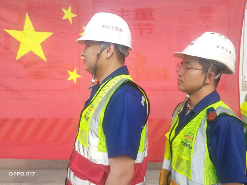 項(xiàng)目黨支部書(shū)記韓崇生帶領(lǐng)項(xiàng)目先進(jìn)工作者閆其敢開(kāi)展“愛(ài)國(guó)旗、跟黨走”留影活動(dòng)