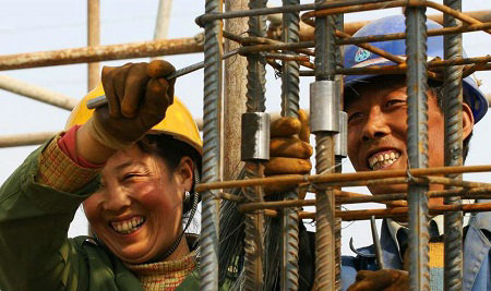 我國現(xiàn)有農(nóng)民工數(shù)量超兩億,已成為各類企業(yè)和城市群體中的重要組成部分,他們是社會主義建設(shè)的主力軍。因文化知識偏低,勞動技能不高,所從事的勞動多是施工一線的苦、臟、累活兒。下面是筆者無意間用數(shù)碼相機(jī)拍攝的幾對農(nóng)民工夫妻共同勞動的場景,并附順口溜式詩歌以贊美之: