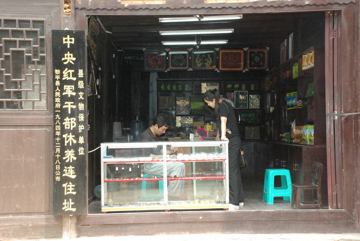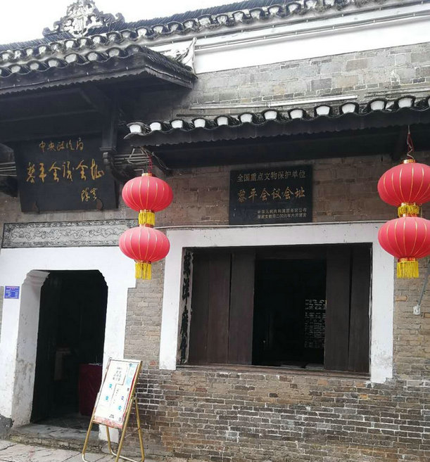 修葺一新的黎平會議紀念館 出了紀念館后門,正對面就是黎平會議會址,會址與紀念館僅十多米遠,一街之隔。黎平會議會址原為一民間宅院,建于清朝嘉慶年間,屬“前店后院”布局,建筑面積約800平方米,當(dāng)年黎平會議就是在這所普通的民居召開。會址正門門匾上有陳云手書的“黎平會議會址”,步入正門后,里面陳設(shè)有當(dāng)年開會的桌椅,作戰(zhàn)地圖,墻上掛有參加黎平會議的人員照片等,還有周恩來、朱德等人的住室。黎平會議會址位于黎平老城翹街,翹街亦屬中國歷史文化名街,街道五六米寬,東西長一公里左右,全部用青石板鋪就,拾階而上,與黎平會議會址相距不遠的是當(dāng)年紅軍干部休養(yǎng)連住地。佇立在小街中間,看這已顯得滄桑凝重的黎平會議舊址及對面的黎平會議紀念館,再看看周圍古老低矮的建筑,依舊寧靜的老街,時光仿佛一下子停止,眼前浮現(xiàn)出當(dāng)年數(shù)萬紅軍將士在黎平的景象。