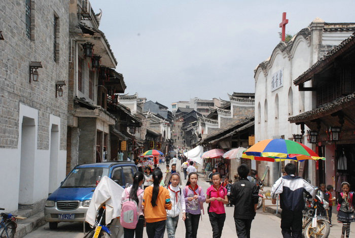 圖為幾名少先隊員放學(xué)從翹街走過 參觀完黎平會址,我獨自一人漫步在黎平的大街上,黎平縣城不大,馬路和街道兩旁的房屋也比較老舊,沒有多少太高的建筑,畢竟是西部邊遠地區(qū),黎平的經(jīng)濟發(fā)展還是比較緩慢,今年三月份,黎平縣才實現(xiàn)脫貧,正式退出國家貧困縣序列。這里遠離都市的喧囂,當(dāng)?shù)厝藷崆橛焉疲凶咴诖蠼稚?,這個時候你什么都可以想,什么都可以不想,真正的會讓你身心得到徹底的放松。