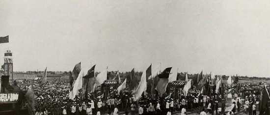 營(yíng)門五色彩旗艷,伙房炊煙溢香味。