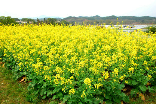 每當(dāng)春風(fēng)吹走了寒冷,吹綠了大地時(shí),令人心醉的油菜花開遍了田野。她同上蒼賦予寧波這片神奇土地上的奇山異水、奇草異樹等美麗的自然景觀一道,構(gòu)成一幅宏大秀美、富有神韻的巨幅畫卷。置身于此情此景,好不愜意,好不讓人心神激蕩!有一首詩這樣寫道:“一幅春天的畫鋪的寬又長,一首春天的歌大家都愛唱,看一看我們胸前,摸一摸我們的肩上,撩起我們的衣角,到處可抖下無數(shù)的花香。放眼望,一片黃,靠攏身,一堵墻,抓把風(fēng),風(fēng)也香,看太陽,太陽黃。從馨香的田壟走出來,從油菜花叢中走出來,花染黃了頭發(fā),花染黃了衣裳。”這首膾炙人口的詩,是詩人對(duì)油菜花由衷的贊美。