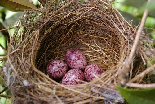 家鄉(xiāng)駝梁山森林覆蓋率高,自然環(huán)境好,適宜多種動物繁衍生息。初夏是喜鵲、麻雀、野雞等各類飛禽繁殖的高峰期,所以它們未等天氣轉(zhuǎn)暖便開始在高大的樹上和草叢里的隱蔽處筑巢,為繁衍后代提供安穩(wěn)、舒適的條件。我們村里的男孩子,對樹上、灌木叢里的鳥窩很感興趣,都想從窩里掏幾個鳥蛋,回家炒著吃。樹上的鳥窩一般專屬喜鵲和老鷹,外形比籃球大,暴露在光天化日之下,數(shù)百米、一兩公里外便可看到。它們以為人類沒有其飛翔的本領(lǐng),所以很自信地在松樹、楊樹或者樺樹的樹冠上建家,過上安穩(wěn)的日子,殊不知,它們太天真,醒目的巢穴容易被人類或者別的物種光顧,遭遇厄運在所難免,做媽媽的夢想破滅。喜鵲、鷹建造一座房子需要幾個月時間,比人類蓋房還要辛苦。人們發(fā)現(xiàn)哪棵樹上有鳥窩,大孩子們便爭先恐后地往樹上爬,即使衣服被樹皮劃破,挨大人一頓打罵也不在乎,只要能弄到鳥蛋。這種帶有野性的頑皮,山里孩子身上普遍存在。當(dāng)然樹上掏鳥蛋不是每回都那么幸運,因為天敵太多,有鳥窩便有不速之客造訪,捷足先登者為勝。有一次村里一個大孩子興致勃勃地爬到后山的一棵樺樹上掏鳥蛋,以為勝利的果實即將到手,準(zhǔn)備伸手進去時,先瞪大眼睛窺探了一下里面,嚇得大驚失色,尿了一褲子,連屁都放出來了!里面竟然盤著一條大蛇,正朝著他張望呢!這個意外嚇壞了許多想掏鳥蛋的孩子,后來沒人敢上樹掏鳥蛋了,喜鵲和鷹過上了安穩(wěn)日子。