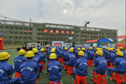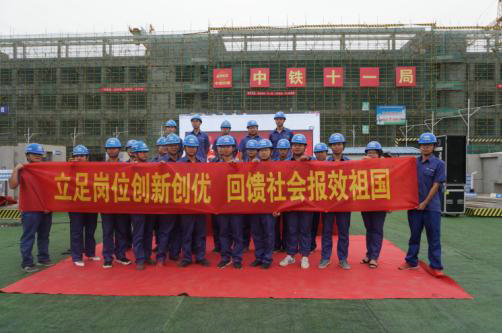 做承諾環(huán)節(jié),公司黨委副書記、工會主席趙小紅、項目經(jīng)理劉磊、書記李雁帶領(lǐng)項目員工紛紛在“銘記崢嶸歲月,爭做大國棟梁”的紅色橫幅上簽名,寫下莊嚴承諾。隨后,正式啟動“大干四季度勞動競賽活動”儀式,項目總工程師江永宣讀勞動競賽節(jié)點計劃,項目黨工委書記李雁宣讀大干四季度勞動競賽倡議書,項目經(jīng)理劉磊代表項目部進行表態(tài),趙主席向青年突擊隊代表授旗,號召項目全體員工要確保項目建設(shè)目標順利完成,為下半年施工大干奠定堅實基礎(chǔ)。