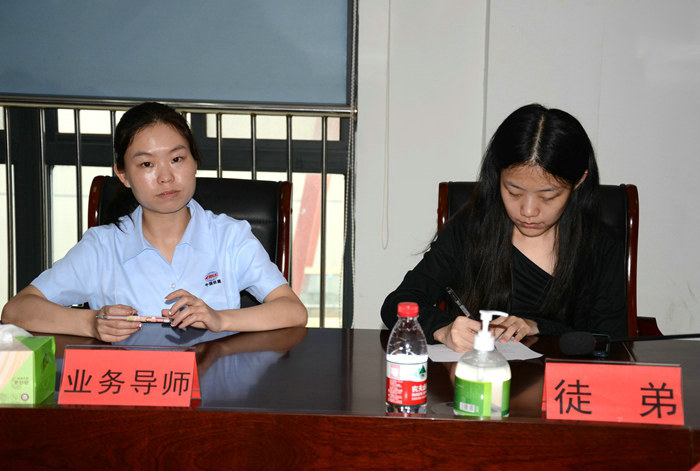 業(yè)務(wù)導(dǎo)師季龍菊(左)與林金宇簽訂見習(xí)協(xié)議 呂奎元攝