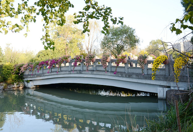 江南水鄉(xiāng)處處有橋,已經成為了人們生活的一部分。設計者有心,觀賞者有意,園林景觀生于自然,長在城市。橋,不是沒有生命的冷冰冰的建筑物,李白的“兩水夾明鏡,雙橋落彩虹”生動地描繪出橋在水中的倒影無限風光的璀璨色彩,人們情不自禁地用詩文來贊頌它。它體現著人類的智慧,并給人以美的享受。一座橋,橫跨南北;一條河,流淌東西。我們都喜歡橋,因為它能讓人走捷徑,縮短時空的距離;人在橋上走,水在橋下流。站在橋上看風景的人不曾想自己也成了別人眼中的風景。