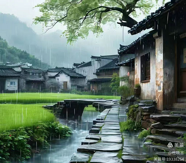 雨絲斜斜織著老家的模樣,