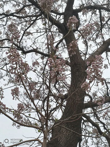 梧桐老樹開滿花,枝頭鳥兒叫喳喳。