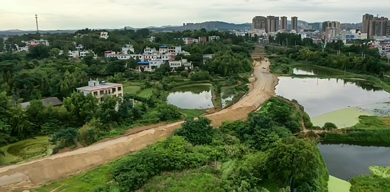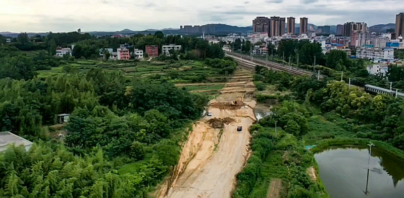 (航拍建設中的鋪軌基地與京九鐵路浠水站聯(lián)絡線)
