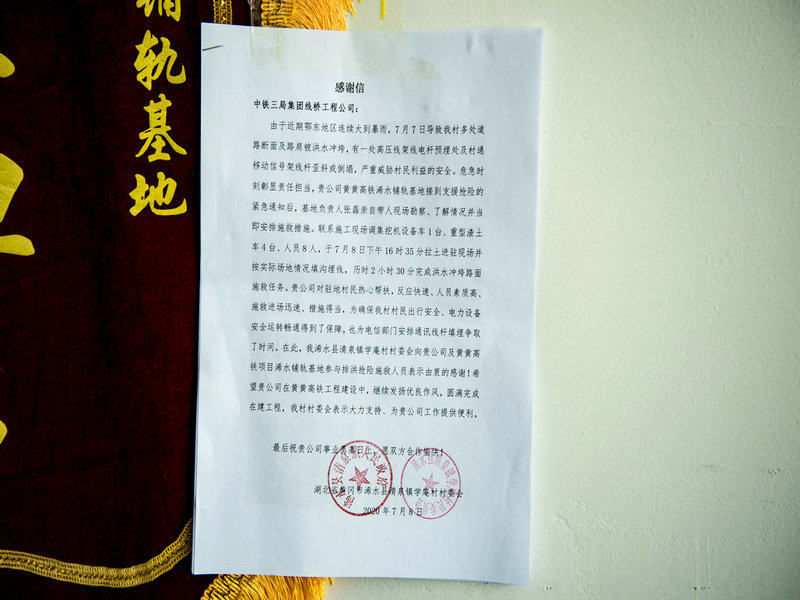 ——黃黃項目浠水南站鋪軌基地獲贈抗洪救災(zāi)錦旗