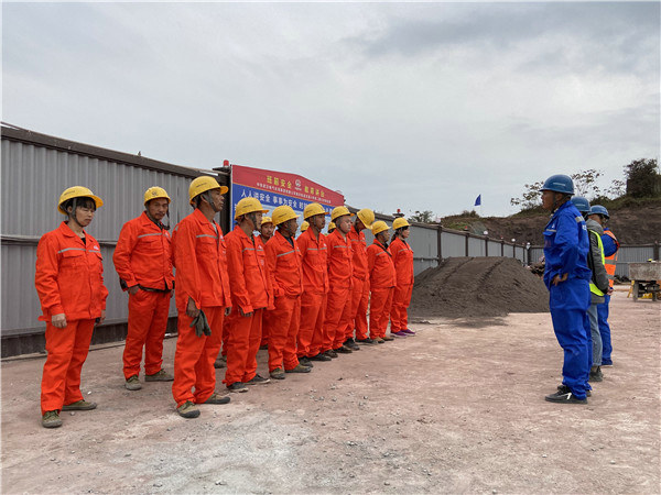 圖:12月26日早上,現(xiàn)場(chǎng)人員正在開工前講話,安排當(dāng)天的主要工作和提醒安全操作注意事項(xiàng)。董志剛攝