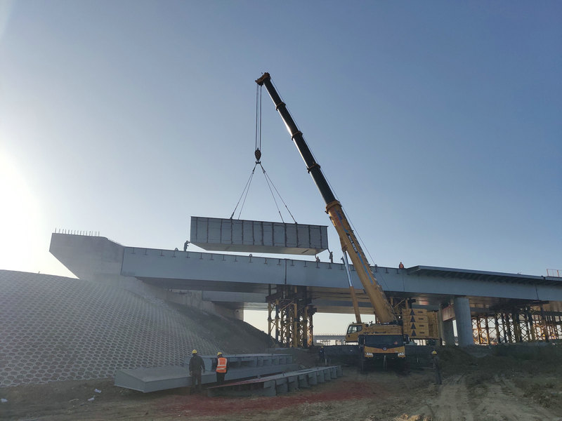 永興互通鋼箱梁為上羅高速全線鋼箱梁第一個(gè)開始架設(shè)、第一個(gè)全部架設(shè)完成,且第一個(gè)打造了具有初步形象的樞紐互通。鋼箱梁的全部吊裝完成,意味著上羅高速6標(biāo)在“百日大干”勞動競賽階段完成了階段性節(jié)點(diǎn)目標(biāo),為上羅高速的建成通車奠定了堅(jiān)實(shí)的基礎(chǔ)。