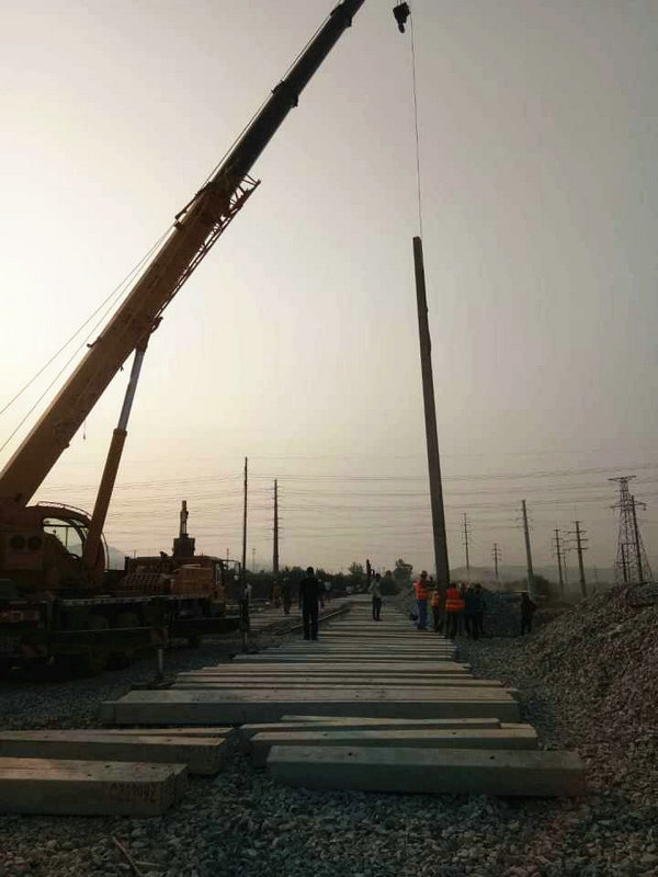普鋼鐵路專用線接觸網(wǎng)組立第一桿