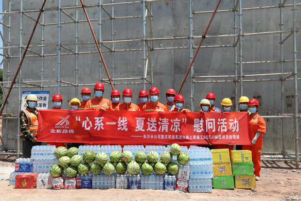 為確保廣大員工和勞務(wù)工身體健康和生命安全,全身心投入到繁忙的生產(chǎn)建設(shè)中,該標(biāo)段及時(shí)為他們發(fā)放了涼茶、西瓜、礦泉水、仁丹、藿香正氣水等防暑降溫物資,將組織的關(guān)愛(ài)送到他們的心坎上,極大鼓舞了一線建設(shè)者的信心和斗志。