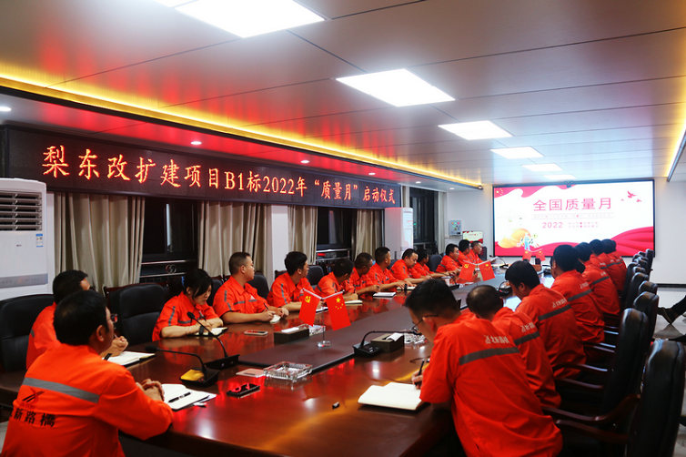 9月1日,北新路橋集團長沙分公司滬昆高速梨東改擴建工程B1標項目(簡稱:滬昆B1標項目)以“推動質(zhì)量變革創(chuàng)新,促進質(zhì)量強國建設”為主題的2022年“質(zhì)量月”活動正式啟動。該項目部全員參加啟動儀式。