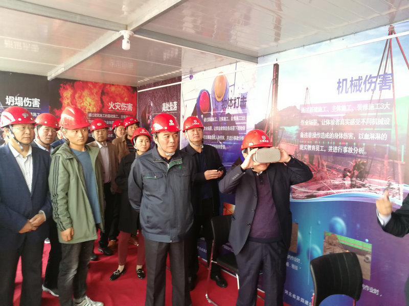 與會人員參觀了項目部的全方位噴淋系統(tǒng)、安全體驗區(qū)和VR安全體驗館,康會彩戴上眼鏡現(xiàn)場進行了VR安全體驗,對項目部先進的安全體驗設備給予了表揚。大家觀摩了模塊化防護欄桿、標準化鋼筋加工區(qū)風險區(qū)劃分、技術交底二維碼等創(chuàng)新應用,并對項目部風險區(qū)劃分、將漫畫融入到圍擋中的做法給予了高度贊揚??禃时硎荆袃Z新樂項目部有很多方面值得學習和借鑒,希望觀摩單位認真學習,積極借鑒先進的管理理念和做法,并在全市范圍內推廣。