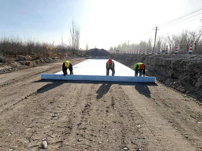正在閱讀:水電集團(tuán)市政路橋第三筑路草湖一級路施工項目14+880-13+180路基頂鋪設(shè)土工布