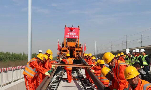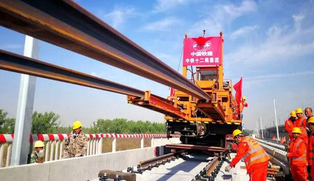 4月15日上午9時(shí)28分,在北京至雄安新區(qū)城際鐵路李營(yíng)段施工現(xiàn)場(chǎng),隨著中鐵十二局集團(tuán)現(xiàn)場(chǎng)指揮人員一聲令下,第一組500米長(zhǎng)鋼軌從T11運(yùn)輸車前端緩緩送出,平穩(wěn)落在無(wú)砟道床上,標(biāo)志著京雄城際鐵路建設(shè)整體從線下施工轉(zhuǎn)入線上軌道鋪設(shè)階段,也意味著獻(xiàn)禮新中國(guó)成立70周年的京雄城際鐵路(北京段)的開(kāi)通運(yùn)營(yíng)進(jìn)入最后沖刺階段。