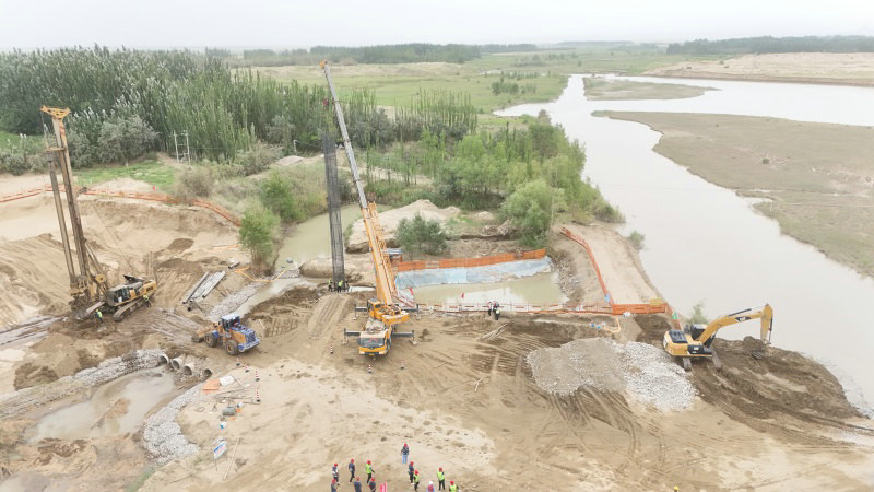 昆玉訊(通訊員 徐海峰)夏日的拉里昆濕地上,焊花與烈日共舞,機(jī)械聲和河水聲交織。北新路橋集團(tuán)兵團(tuán)交建公司昆墨公路拉里昆濕地大橋施工現(xiàn)場(chǎng),三十余名工人正頂著高溫綁扎鋼筋、調(diào)試設(shè)備,1臺(tái)大型鉆機(jī)在河床內(nèi)精準(zhǔn)實(shí)施打樁——這場(chǎng)與時(shí)間賽跑的攻堅(jiān)之戰(zhàn),因突發(fā)融雪導(dǎo)致的洪水,不得不在汛期與高溫的雙重“烤”驗(yàn)中全力沖刺。