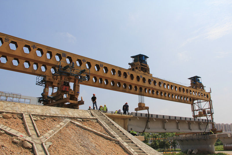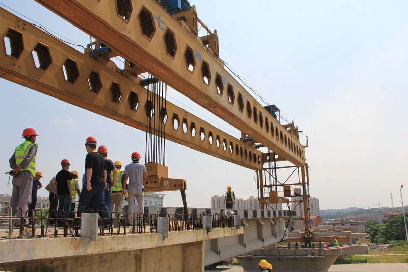 “T梁架設,安全是第一位,為保證繞城特大橋首片T梁萬無一失,從架橋機的進場試運行、支座的穩(wěn)定性、橋面間隙等進行嚴格把控,對架梁過程中的起吊、推送、橫移、落梁、就位等一系列細節(jié)進行死盯嚴防,‘做到一點也不差,差一點也不行’,從而實現(xiàn)了‘穩(wěn)就是快、穩(wěn)就是安全,穩(wěn)就是效益’的良好開端。”安全總監(jiān)郝雷介紹道。