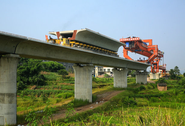 據(jù)了解,川南城際鐵路內(nèi)江至自貢至瀘州線站前工程CN-5標(biāo)段,截至3月18日該工程瀘州段還有500孔730噸預(yù)制箱梁的運架施工,期間架橋機需要通過32處路基、7處連續(xù)梁、2座隧道、1處瀘州車站低位下穿??鄢陨嫌绊憰r間,實際平均每天需要保證架設(shè)3孔箱梁。經(jīng)過十天以來的搶工,截至目前每天平均完成4孔箱梁架設(shè),中鐵二十三局四公司運架梁專業(yè)化公司川南運架項目這種拼搏精神受到川南城際鐵路業(yè)主兩次會議上的高度贊揚和認(rèn)同。