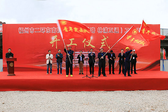儀式由福州市市政建設(shè)開發(fā)有限公司總經(jīng)理助理趙榮鑫主持,福州市市政建設(shè)開發(fā)有限公司副總經(jīng)理郭向徽、監(jiān)理單位總監(jiān)程傳美、中鐵建大橋工程局集團一公司總經(jīng)理張文軍分別致辭;黨員,是團隊的帶頭骨干,要發(fā)揮先鋒模范作用,帶領(lǐng)項目團隊攻堅克難,完成任務(wù)。儀式上,福州市市政建設(shè)開發(fā)有限公司董事長李學(xué)準為項目部黨員先鋒隊授旗;青年興則國家興,青年強則國家強。工程開工,青年當先。福州市市政建設(shè)開發(fā)有限公司副總經(jīng)理郭向徽、集團公司南方指揮部指揮徐文斌、一公司福建指揮部指揮李順軍為項目三個青年突擊隊授旗;福州市市政建設(shè)開發(fā)有限公司董事長李學(xué)準宣布開工。