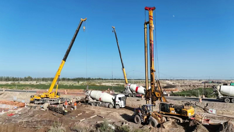 塔北二干渠大橋全長308米,采用6x30m變寬現(xiàn)澆箱梁+3x40m 連續(xù)T梁組合,是該標段最長的大橋和重要的控制性工程,該大橋橫跨玉阿新公路、塔北二干渠及農(nóng)田機耕道,與柳源互通接壤。大橋樁基共有50根,最大孔深達60米,最大孔徑為2米,所處地質(zhì)條件復(fù)雜,存在較厚的粉土層,容易出現(xiàn)塌孔、擴孔問題。為加快施工進度,保質(zhì)保量完成節(jié)點任務(wù),根據(jù)地質(zhì)條件和施工環(huán)境,項目多次組織召開樁基施工技術(shù)質(zhì)量交流會,多措施解決施工生產(chǎn)中安全質(zhì)量和施工進度問題。一是加強施工過程控制,實施監(jiān)理、技術(shù)員全程旁站,把控各個工序環(huán)節(jié)確保施工流程符合標準化規(guī)范要求,保障施工質(zhì)量;二是加緊資源調(diào)配與現(xiàn)場保障,合理調(diào)整人員、機械等資源,保障現(xiàn)場物資、機械供應(yīng)滿足施工需求,以滿足施工生產(chǎn)需求,保障施工進度;三是加大施工現(xiàn)場安全巡查和督導(dǎo)力度,落實安全責(zé)任制,將技術(shù)交底內(nèi)容提前向所有作業(yè)人員進行現(xiàn)場交底,及時處理施工過程中出現(xiàn)的問題,確保樁基快速成孔。